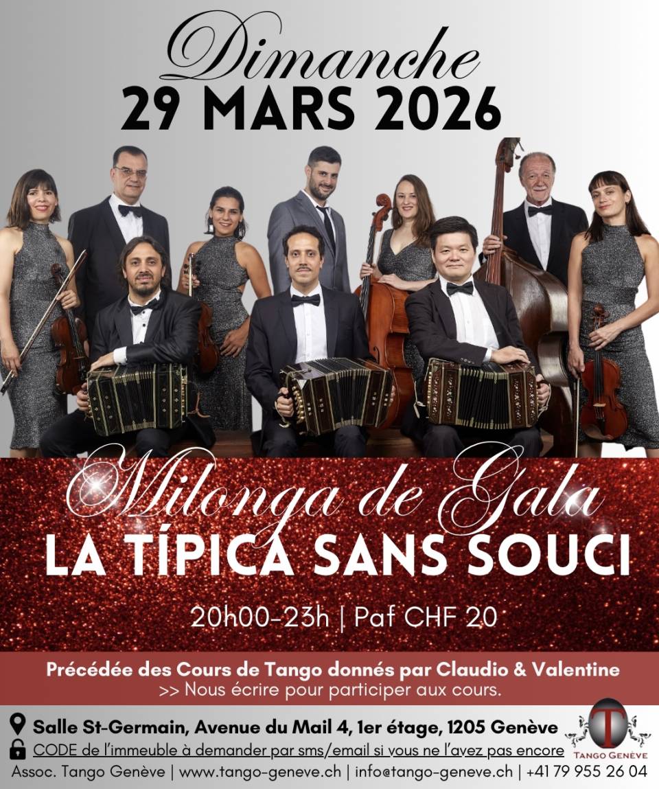 Un des meilleurs orchestres du 21 siècle, EL ORQUESTA TÍPICA SANS SOUCI, sera de retour à Tango Genève pour une Milonga de Gala – exceptionnelle – le dimanche 29 mars 2026 !!!